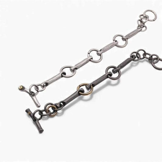 Hand-forged sterling silver meets diamonds and stainless steel with select precious stones in a refined blend of industrial character and modern elegance. Every piece is one-of-a-kind, created individually on the anvil to reflect and protect your own sense of identity.