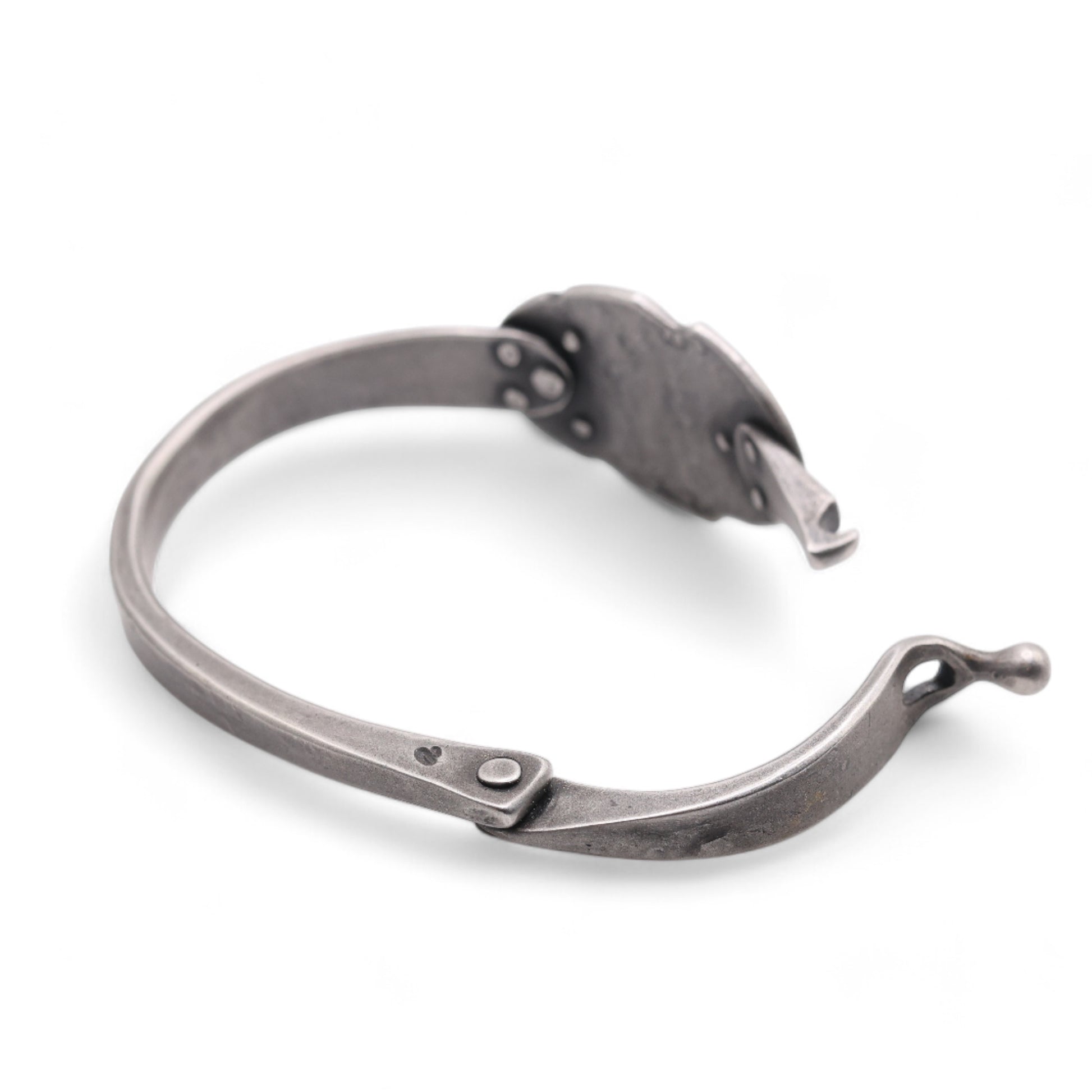 Size: central part is 0,9" wide, the bracelet itself is 0,3" wide, fits on a wrist of 6" circumference.
