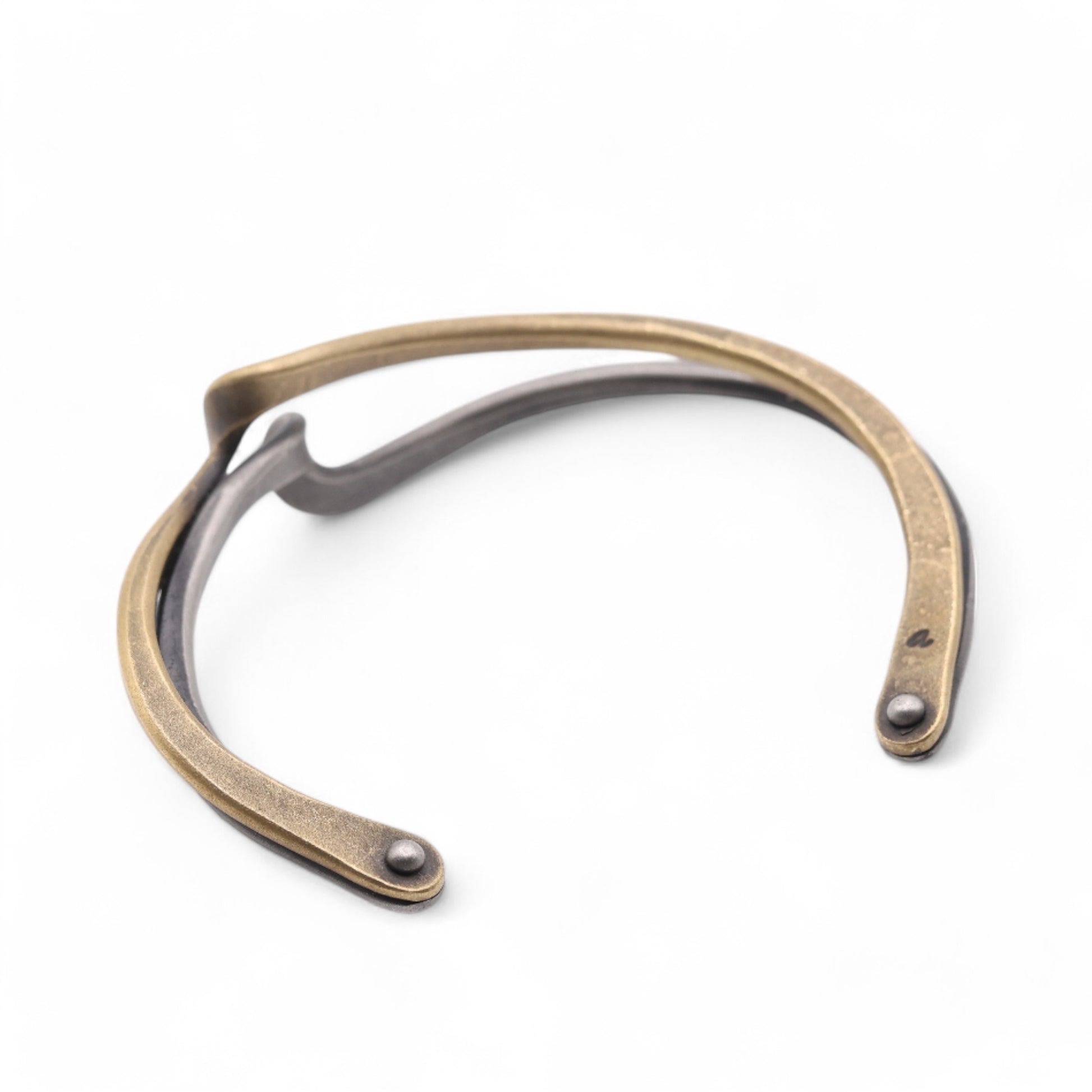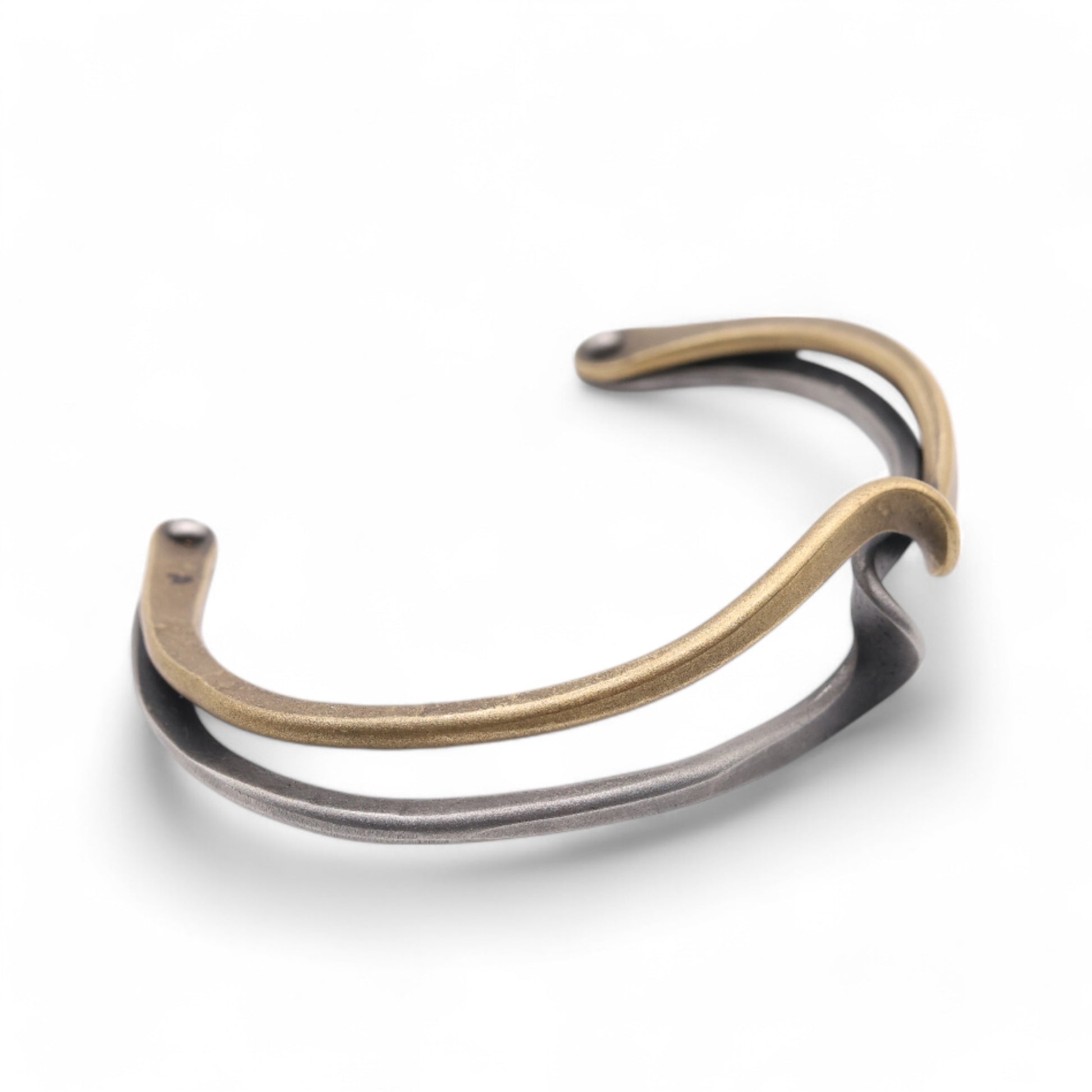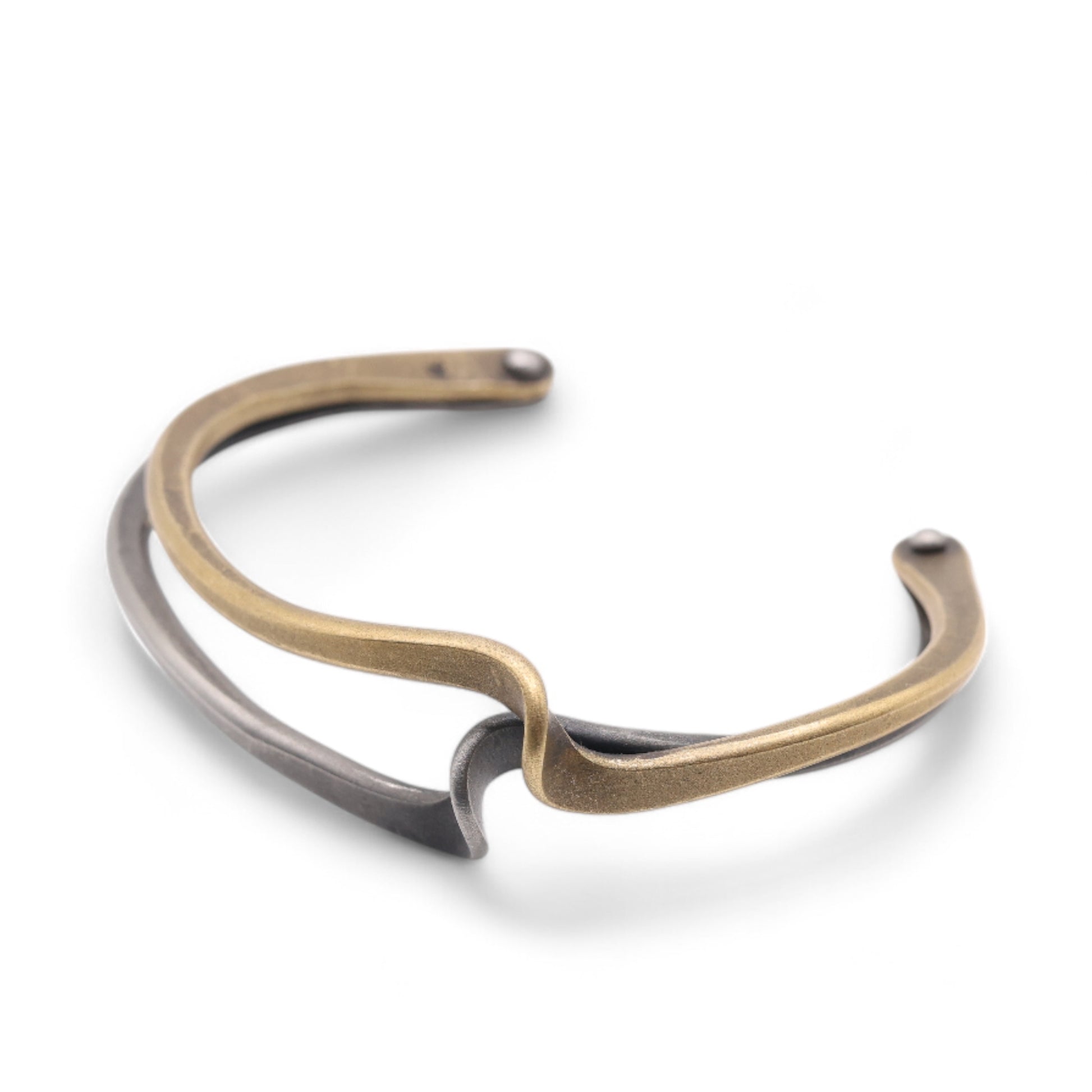 Hand-forged stainless steel and bronze "Wave" Bracelet with a signature brushed black patina finish. Light and simple, the best steel combo! Mix metals as you wish!