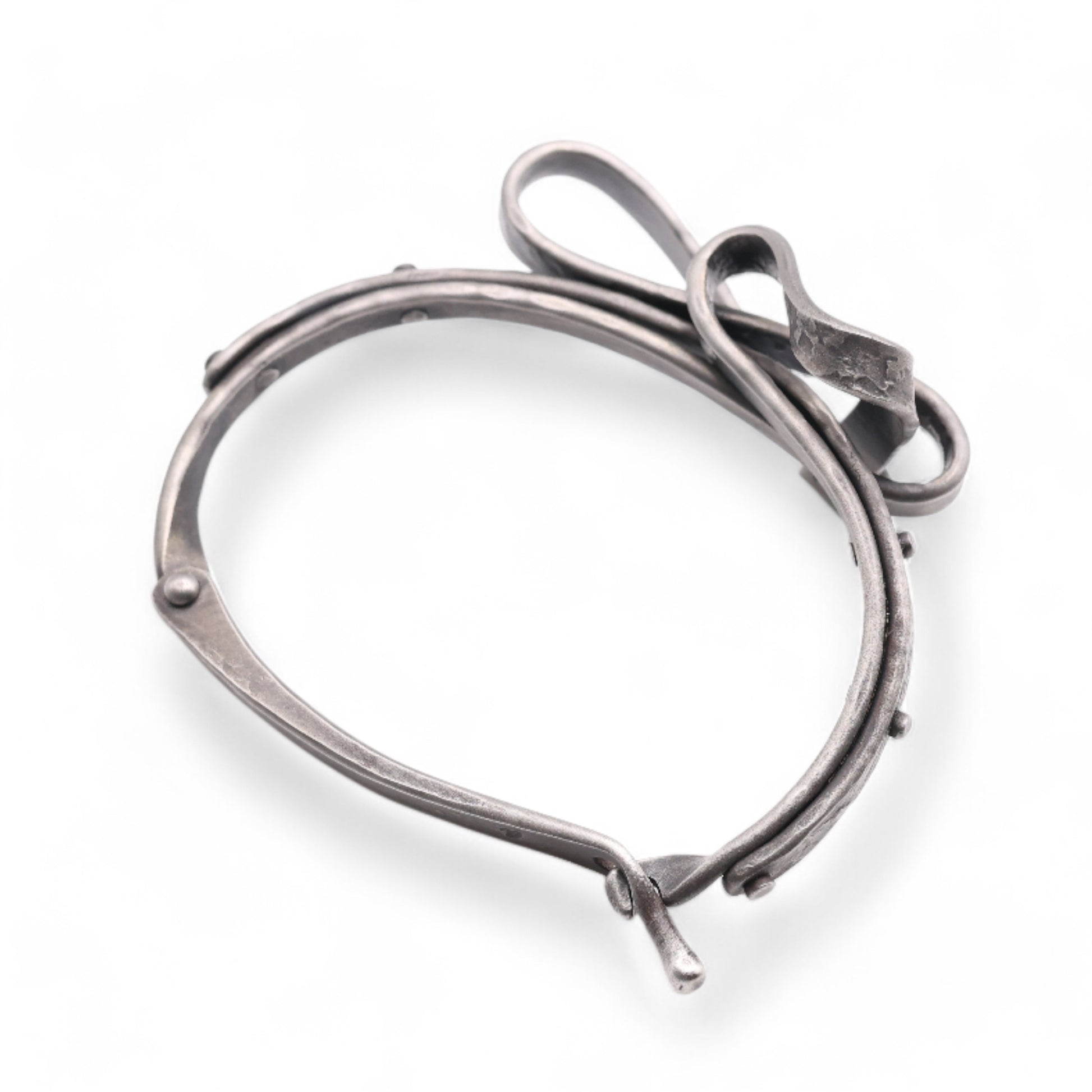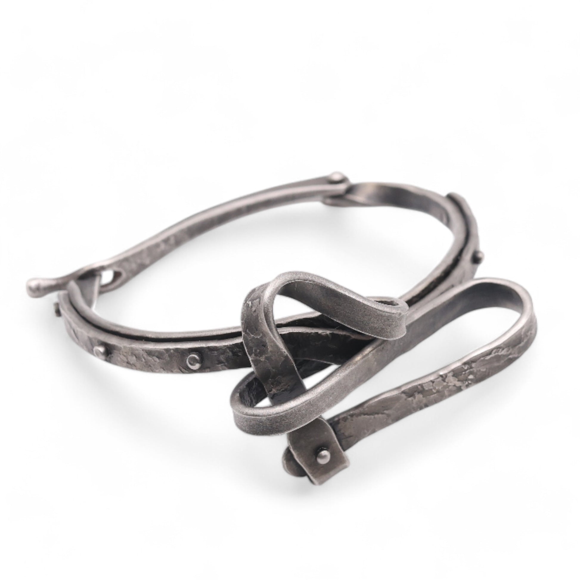 Hand-forged stainless steel "Heart" <3 Bracelet with a clasp, hammered texture and brushed black patina finish. The best for beloved ones.