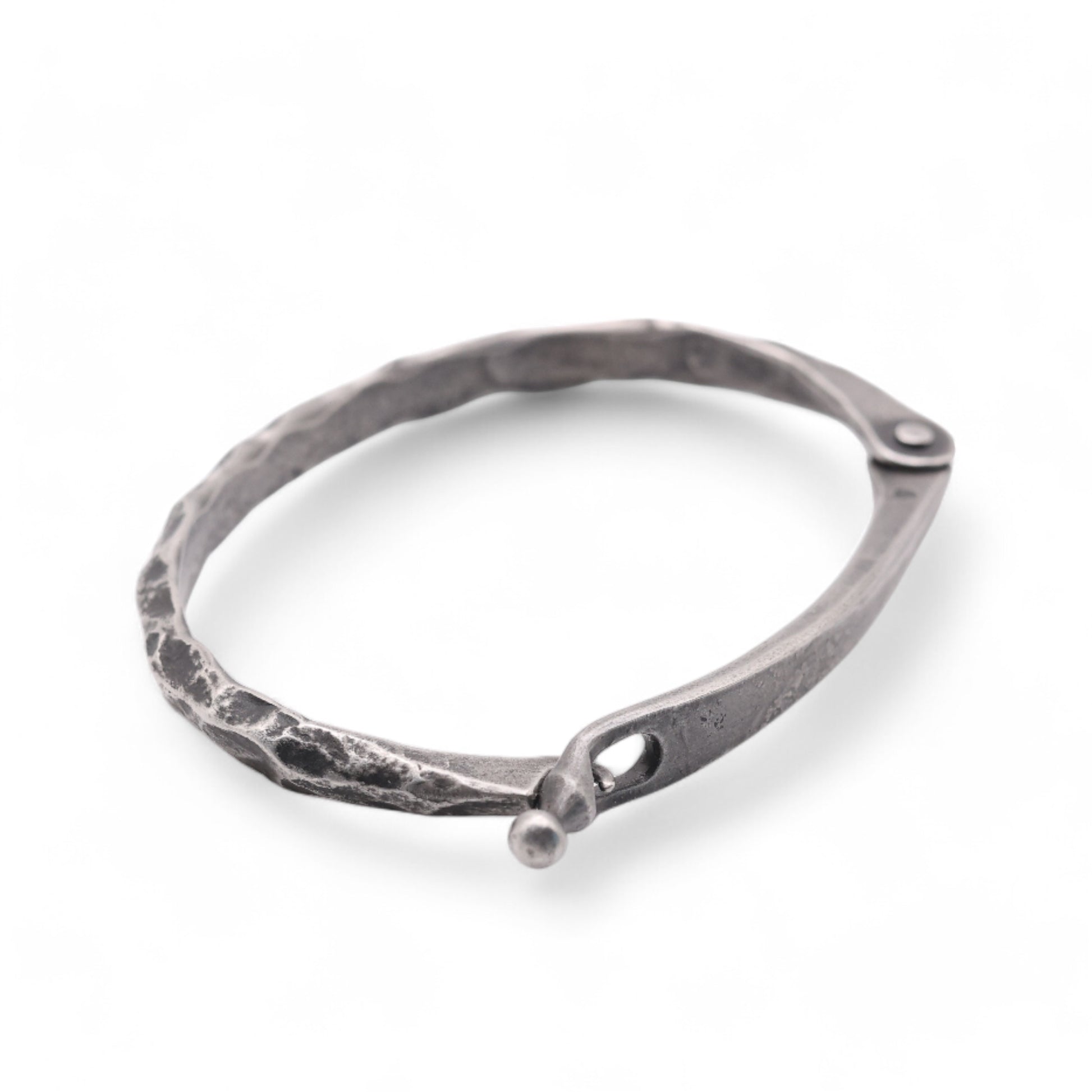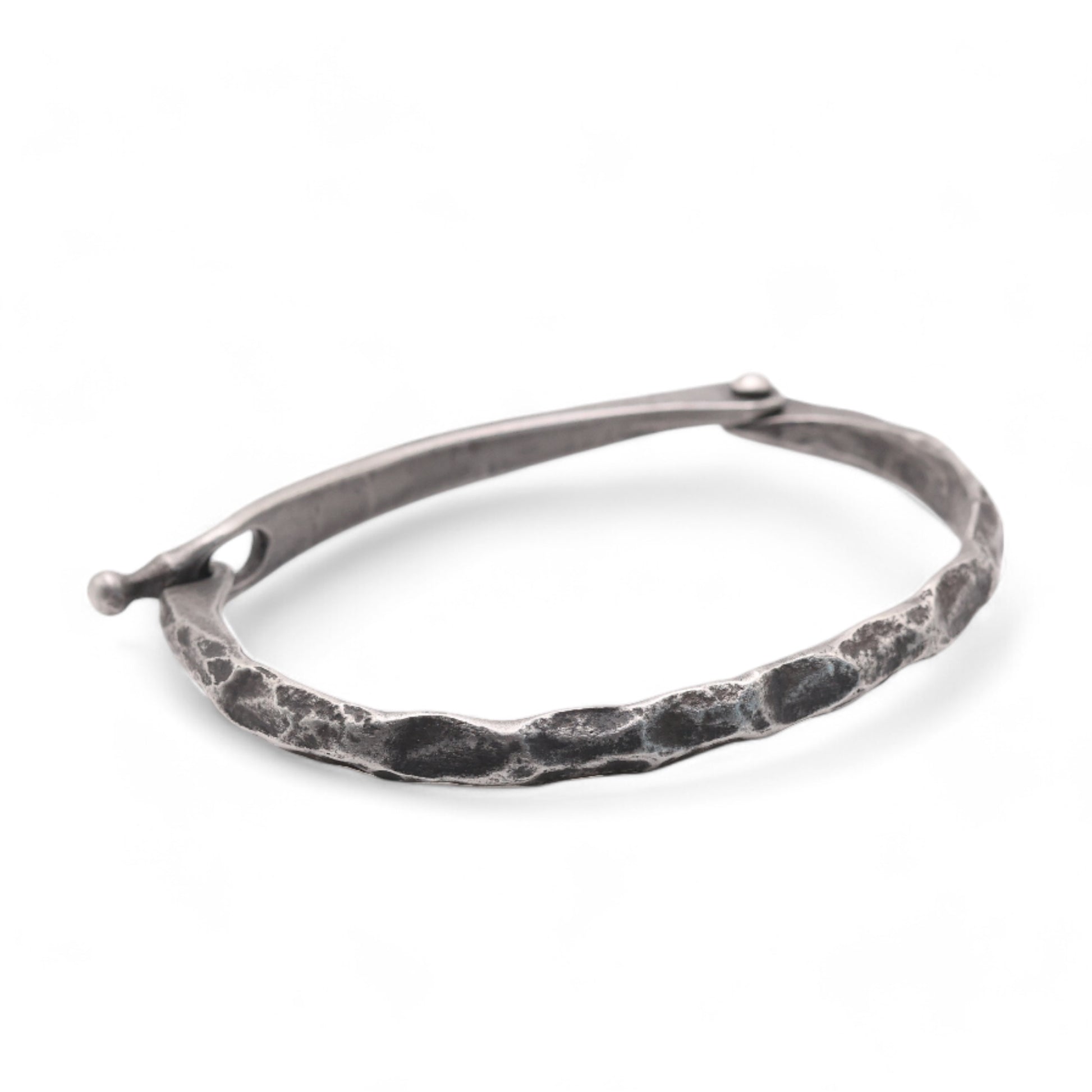 Hand-forged stainless steel Bracelet with a signature hand-hammered texture and safety clasp, brushed black patina finish. Light and comfortable, perfect for any occasion, everyday compliments are inevitable! :)