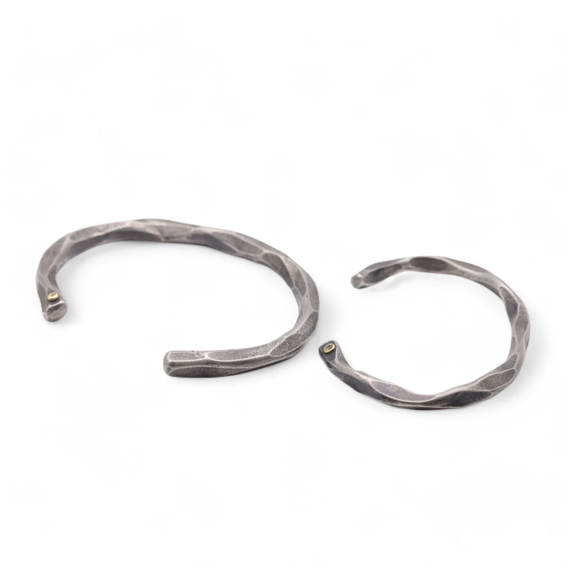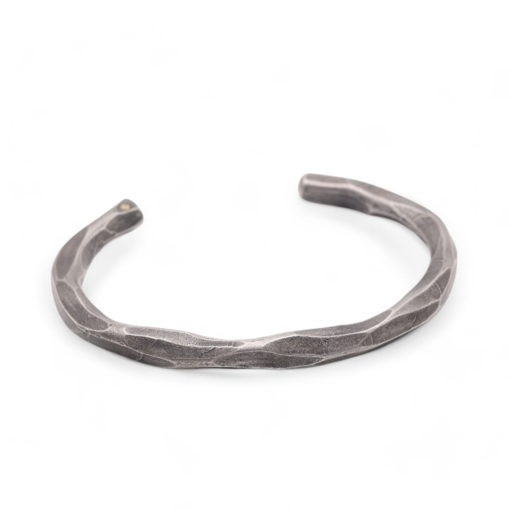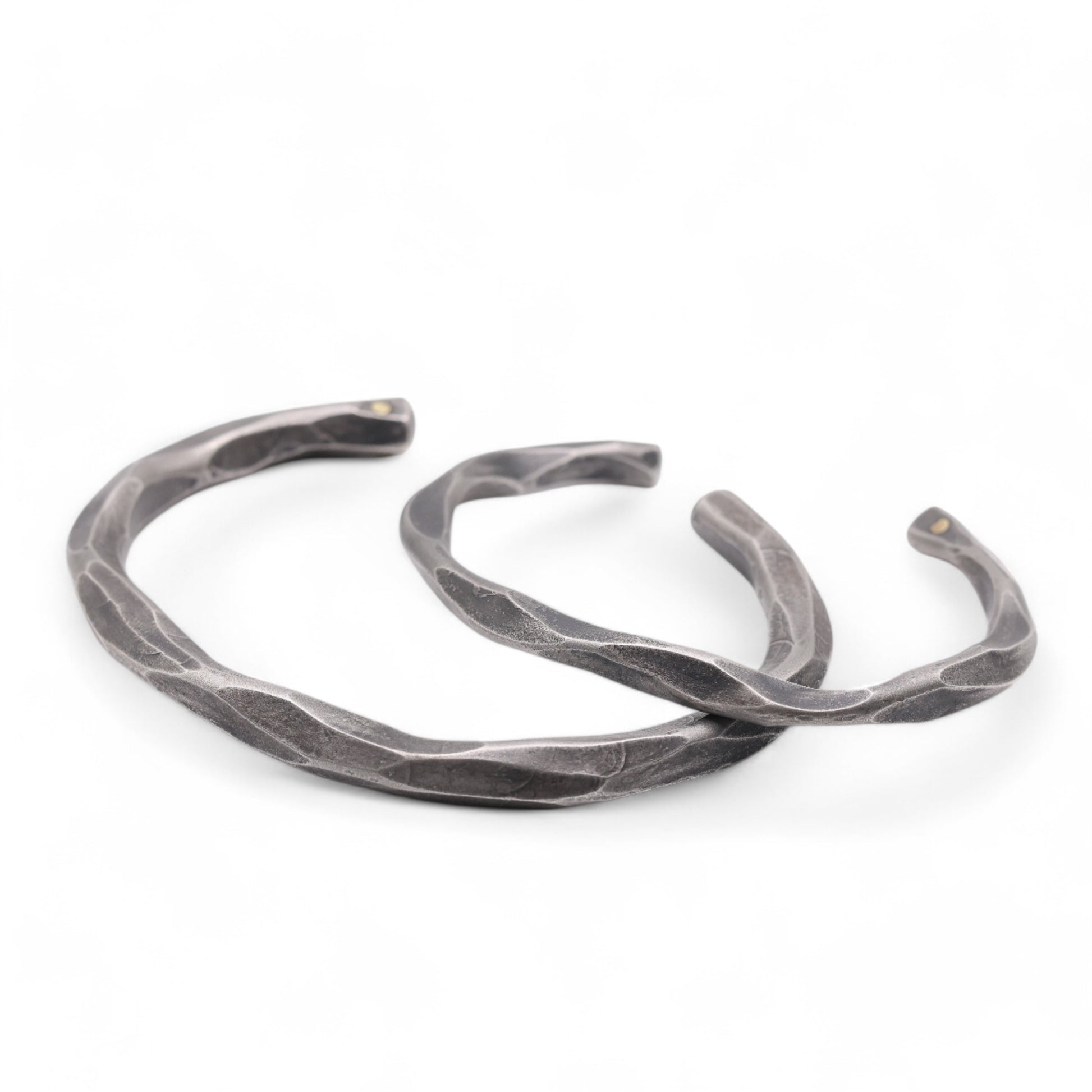 Hand-forged stainless steel stacking Bracelet with a signature texture and brushed black patina finish. Perfect for everyday, unique blacksmith look.