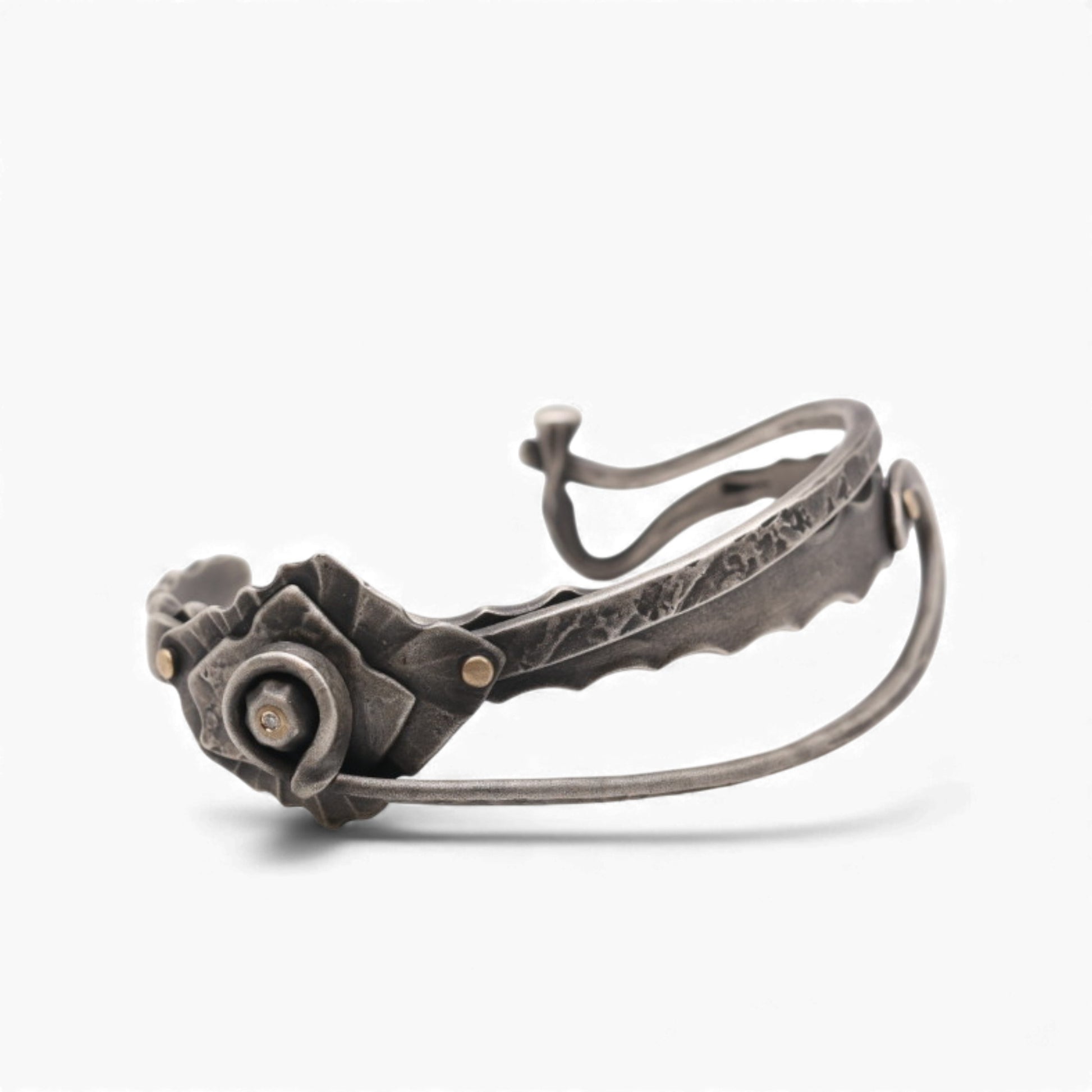Perfect blend of industrial high-end jewelry. Hand-made using traditional blacksmith methods and techniques, from raw material, no casting involved.
