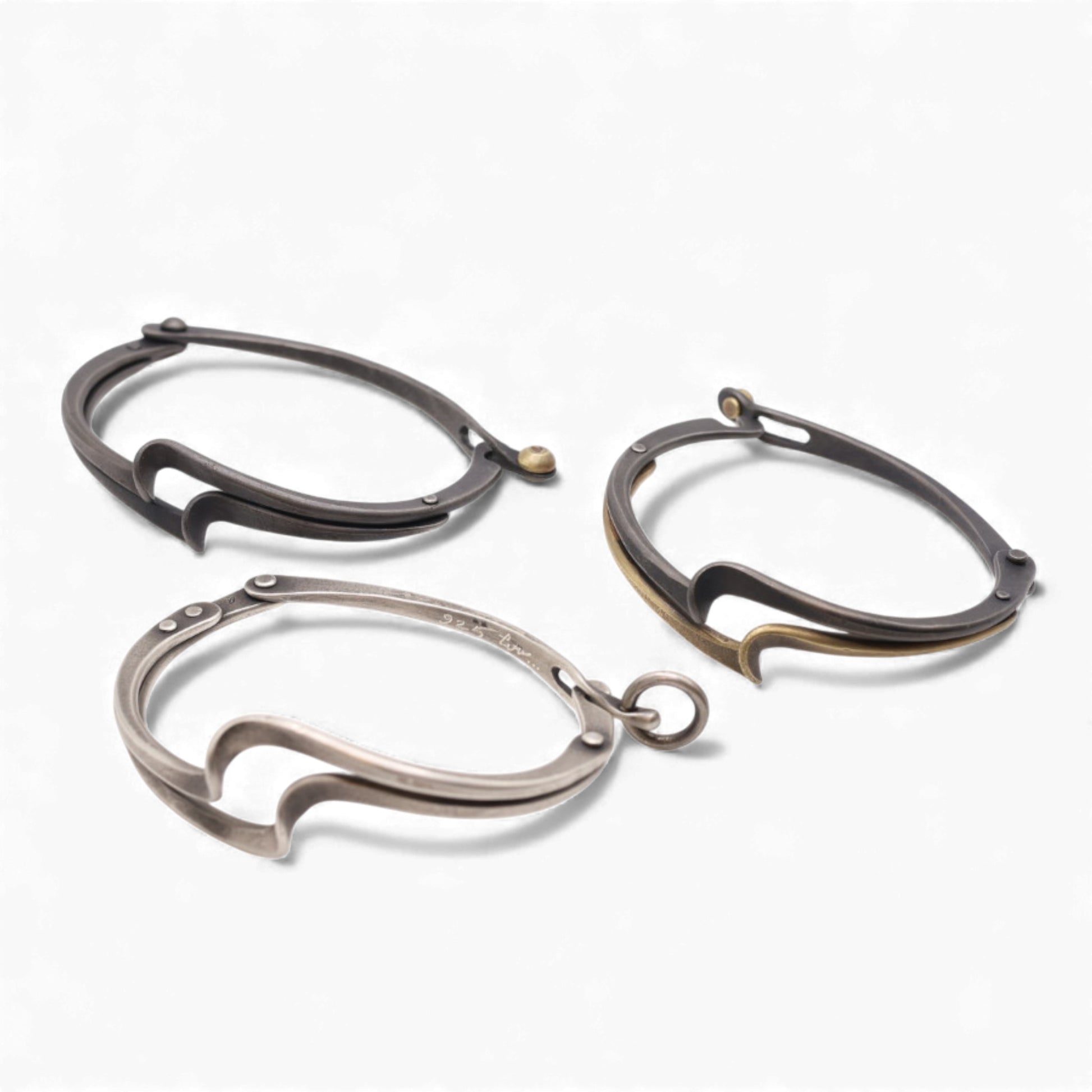 Hand-forged 925 sterling silver bracelet of the original signature design with a clasp, rivets, hand-hammered texture and matte dark finish. The most fabulous classic design in blacksmithing.