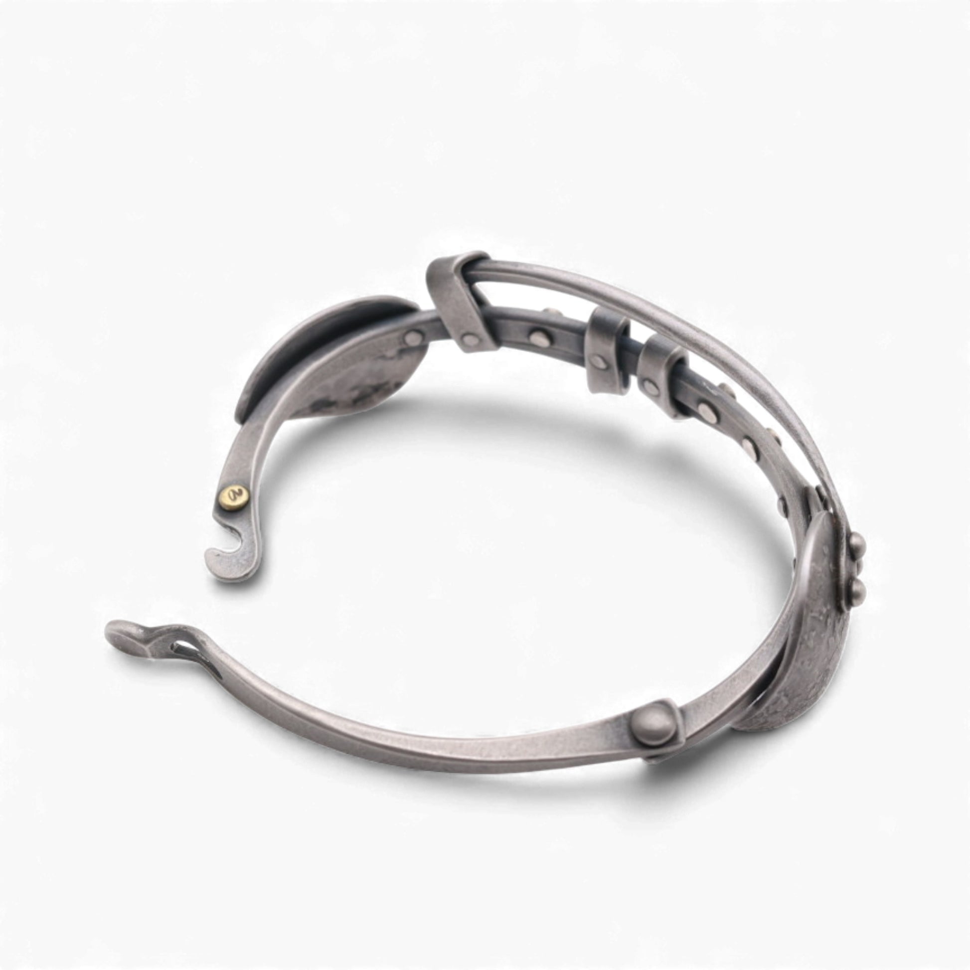 Hand-forged stainless steel bracelet from a special Tree Series. The original signature design with a clasp, rivets, hand-hammered texture and matte dark finish.